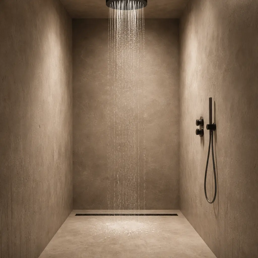 Duchas, zonas de vapor, piscinas, áreas de tratamiento húmedo. El revestimiento tiene que ser impermeable donde el agua entra en contacto directo con la superficie, y transpirable donde lo que hay que gestionar es la humedad ambiental. Son dos situaciones distintas que exigen respuestas distintas.